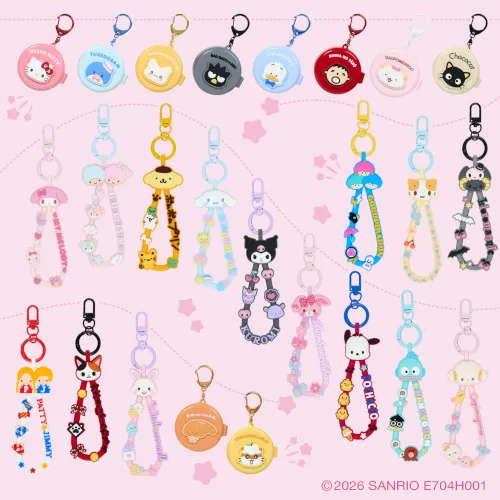 2026.04.03 2026年サンリオキャラクター大賞 第1弾 2026年キャラクター大賞応援グッズ第1弾☆たくさんのノミネートキャラクターたちにスポットを当てた、ラバーコードキーホルダーとシークレットミラー付きコンパクトブラシだよ。推しキャラをGETしてね! シークレットミラー付きコンパクトブラシ 各792円 ラバーコードキーホルダー 各550円 4月9日発売予定